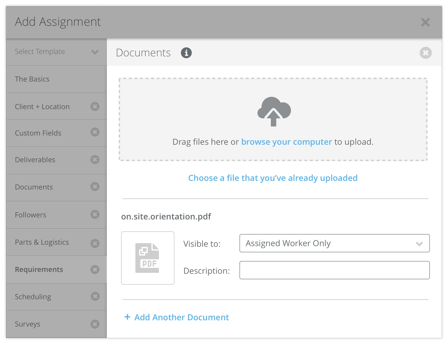 These are typically things like install guides or other documents that the worker will need to complete the assignment.